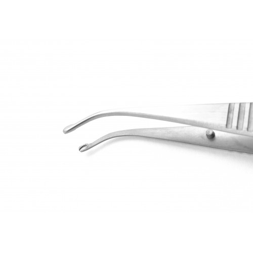 It also known as Arruga Capsule Forceps Standard Curved are an ophthalmic instrument used for holding the lens capsule during cataract procedures. The tips are specially designed so they do not damage the iris. They are oval shaped with a slight cup. This product has a standard curve and overall length of 100 mm.